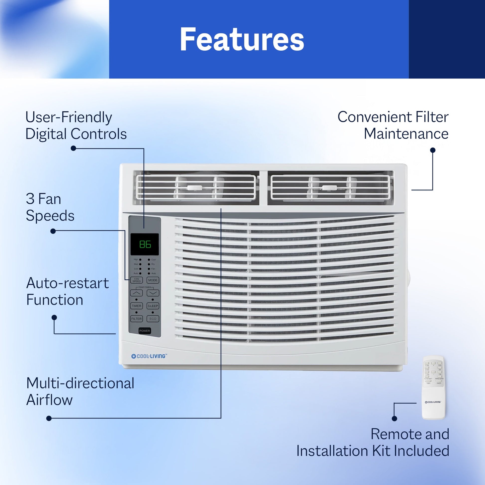 Aire acondicionado de ventana omega de 6000 BTU con kit de instalación omega